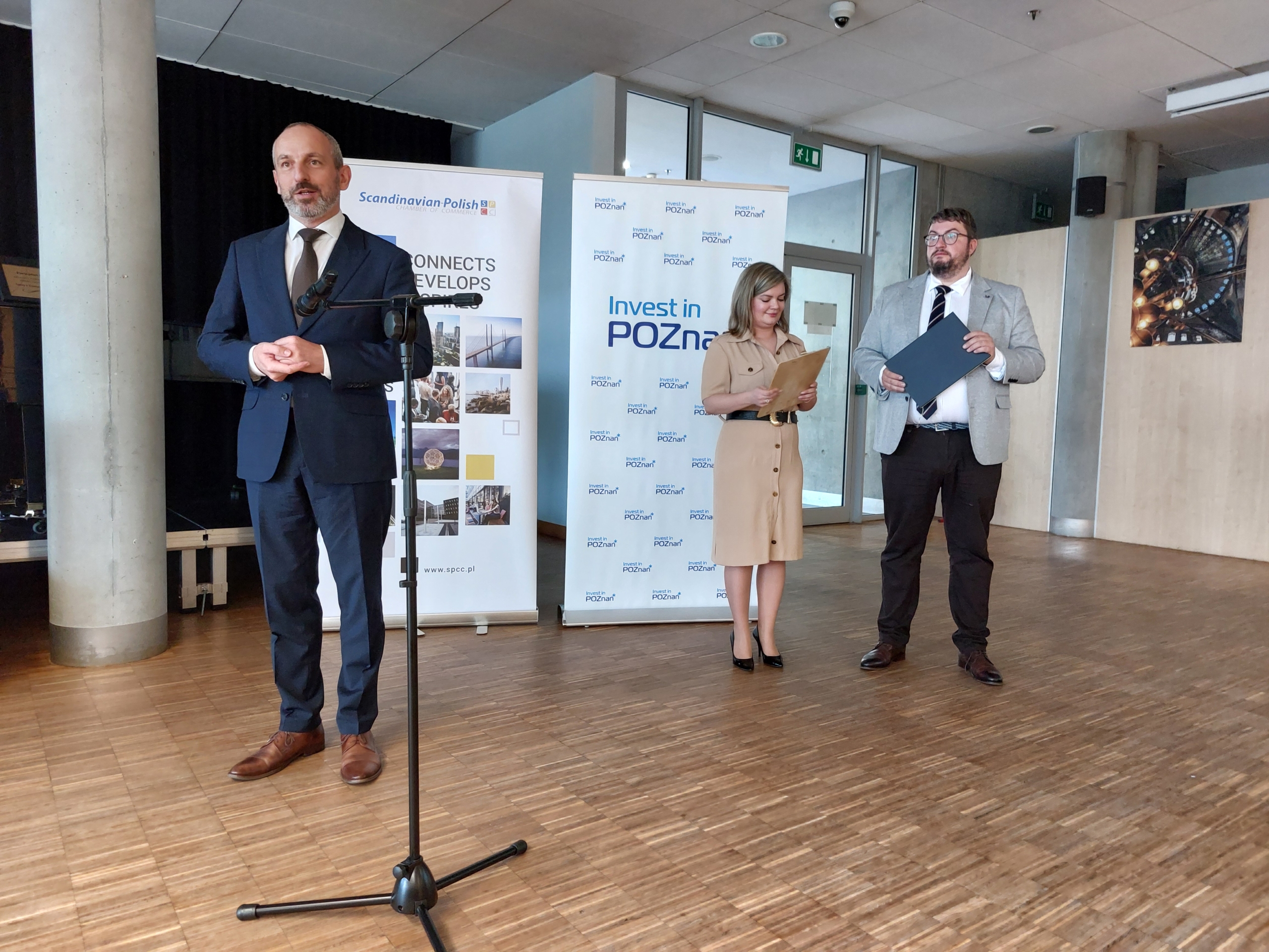 Wydarzenie otworzyli: Prorektor ds. rozwoju i współpracy z gospodarką, prof. PP dr hab. inż. Arkadiusz Ptak, Dyrektor Instytutu Napędów i Lotnictwa, prof. PP dr hab. inż. Andrzej Ziółkowski, Ewa Chojnowska ze Skandynawsko-Polskiej Izby Gospodarczej oraz Jan Gosiewski, Dyrektor Zarządu Transportu Miejskiego w Poznaniu.