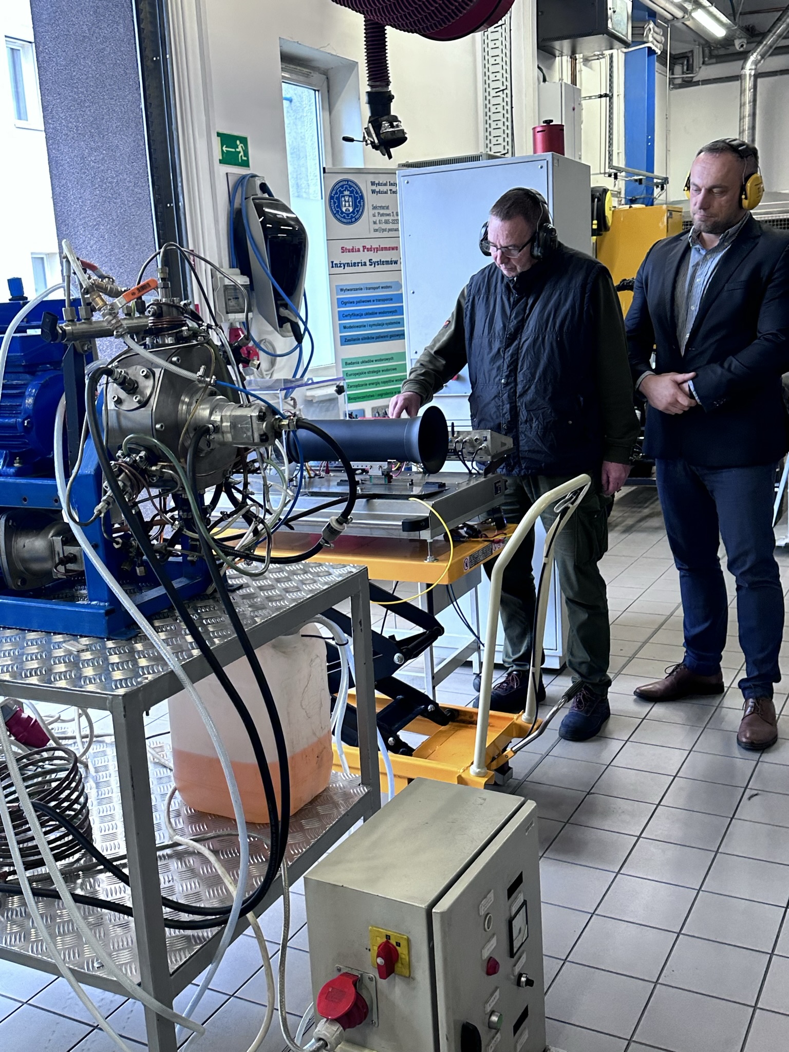 Uczestnicy konferencji odwiedzili laboratoria Instytutu Napędów i Lotnictwa, poznając potencjał badawczy uczelni w obszarze silników spalinowych, napędów hybrydowych i symulacji.